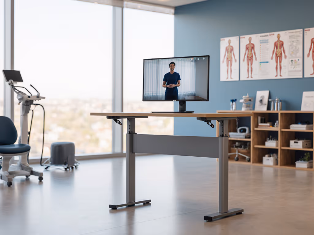 A physical therapist standing desk is not a luxury; it's clinical infrastructure. When you're moving between standing patient assessments, demo exercises, and detailed documentation, your workstation must earn its place through stability, adjustability, and quiet operation. Unlike a home creative workspace, a PT desk supports patient observation, exercise coaching, video conferencing with referral partners, and rapid transitions between sitting and standing. For camera angles, privacy, and workflow tips tailored to remote care, see our telehealth workstation setup. Each of these demands a specific engineering choice.